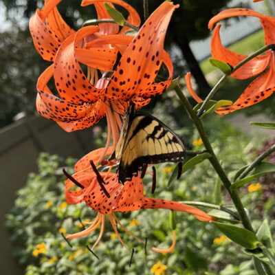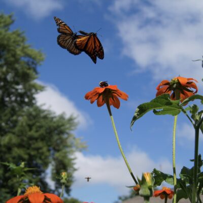 Multiple species of birds visit the gardens yearly, including a mated pair of hummingbirds. Too many species of bees to count, and several species of butterflies, including Admirals, Fritillaries, Yellow Swallowtails, Painted Ladies, and during the fall migration, hundreds of Monarchs! We’ve even had a few Hummingbird Moths visit over the years.